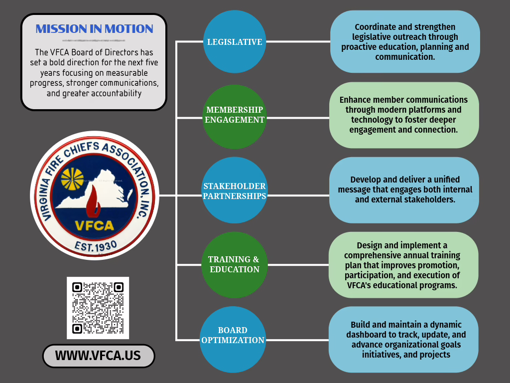 TO ADVANCE VIRGINIA’S FIRE AND EMERGENCY SERVICES THROUGH LEADERSHIP, EDUCATION, AND ADVOCACY.